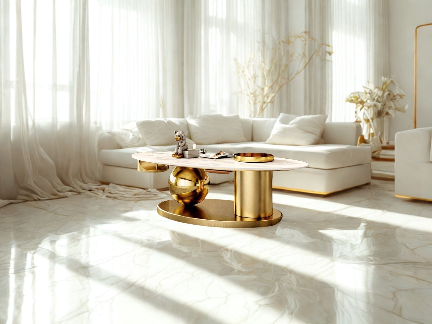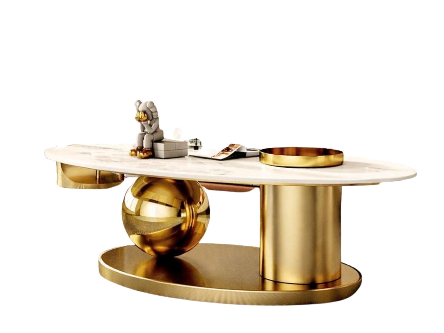 The Velora Coffee Table is a sculptural masterpiece designed to be the definitive focal point of your living room. Featuring a striking asymmetrical base—where a perfect gold sphere meets a bold cylinder—the Velora balances avant-garde design with the timeless elegance of a Pandora Ceramic top. This is furniture as art, crafted for the discerning Australian home.