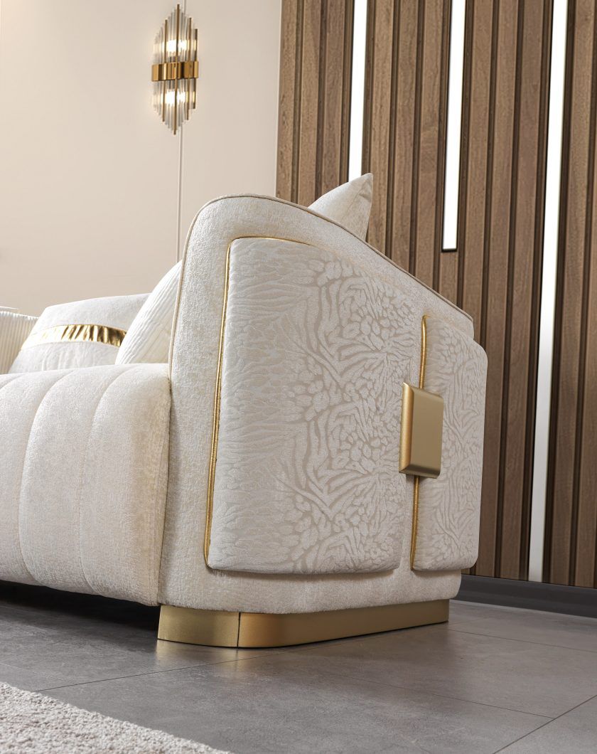 Each piece features smooth sculptural lines, rich upholstery, and gold-accented details that reflect the heritage of Turkish artisanship blended with modern design aesthetics. The result — a perfect harmony of comfort, craftsmanship, and contemporary style.